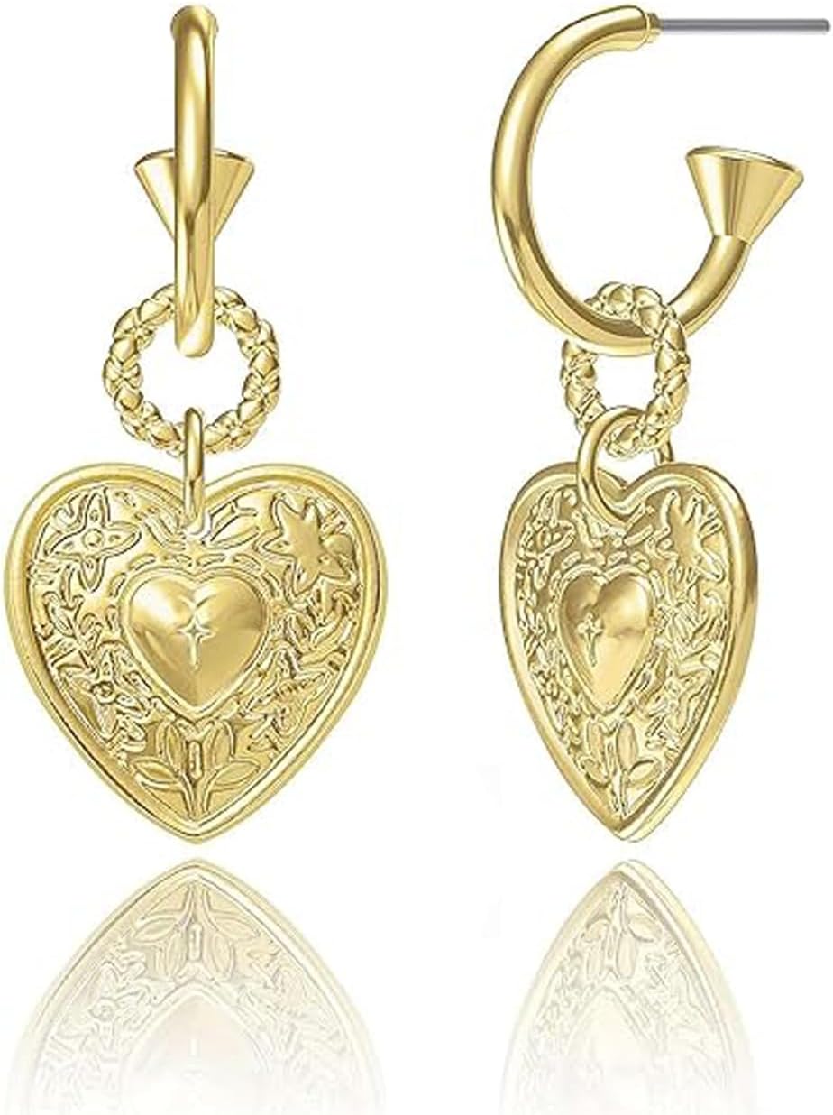 Chunky Heart Earrings for Women Vintage Love Heart Hoop Earrings Chunky Gold Heart Dangle Earrings Statement Fashion Jewelry Accessories