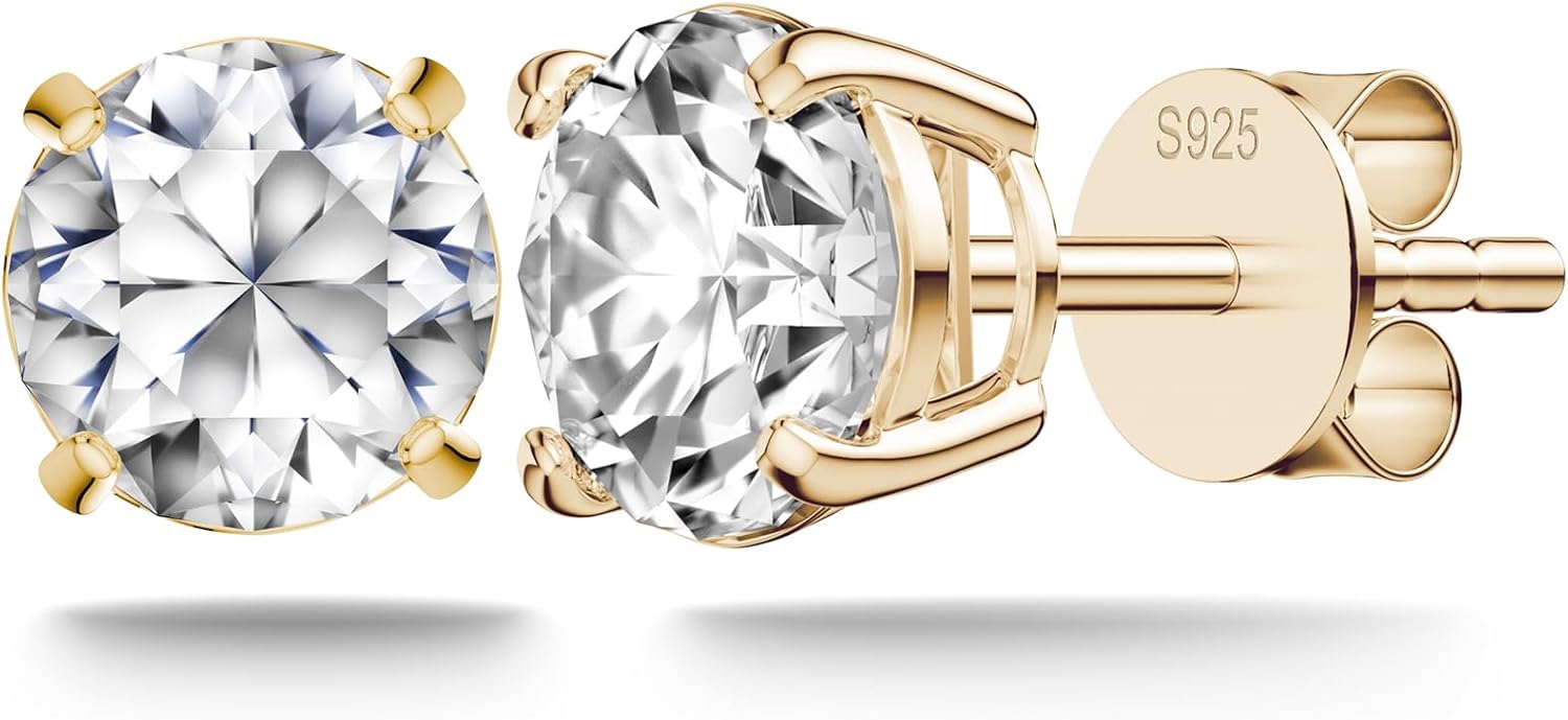 Earrings for Women, Moissanite Diamond Yellow Gold Earrings for Mom, S925 Sterling Silver Earrings, Hypoallergenic Stud Earrings for Women