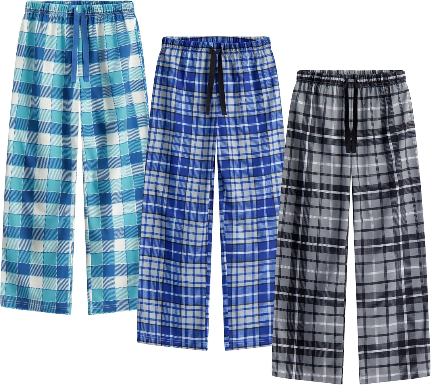US Angels 3-Pack Boys Pajama Pants - Soft Micro Fleece OR Jersey Knit PJ Bottoms for Kids - Boys Sleepwear, Size 7-20