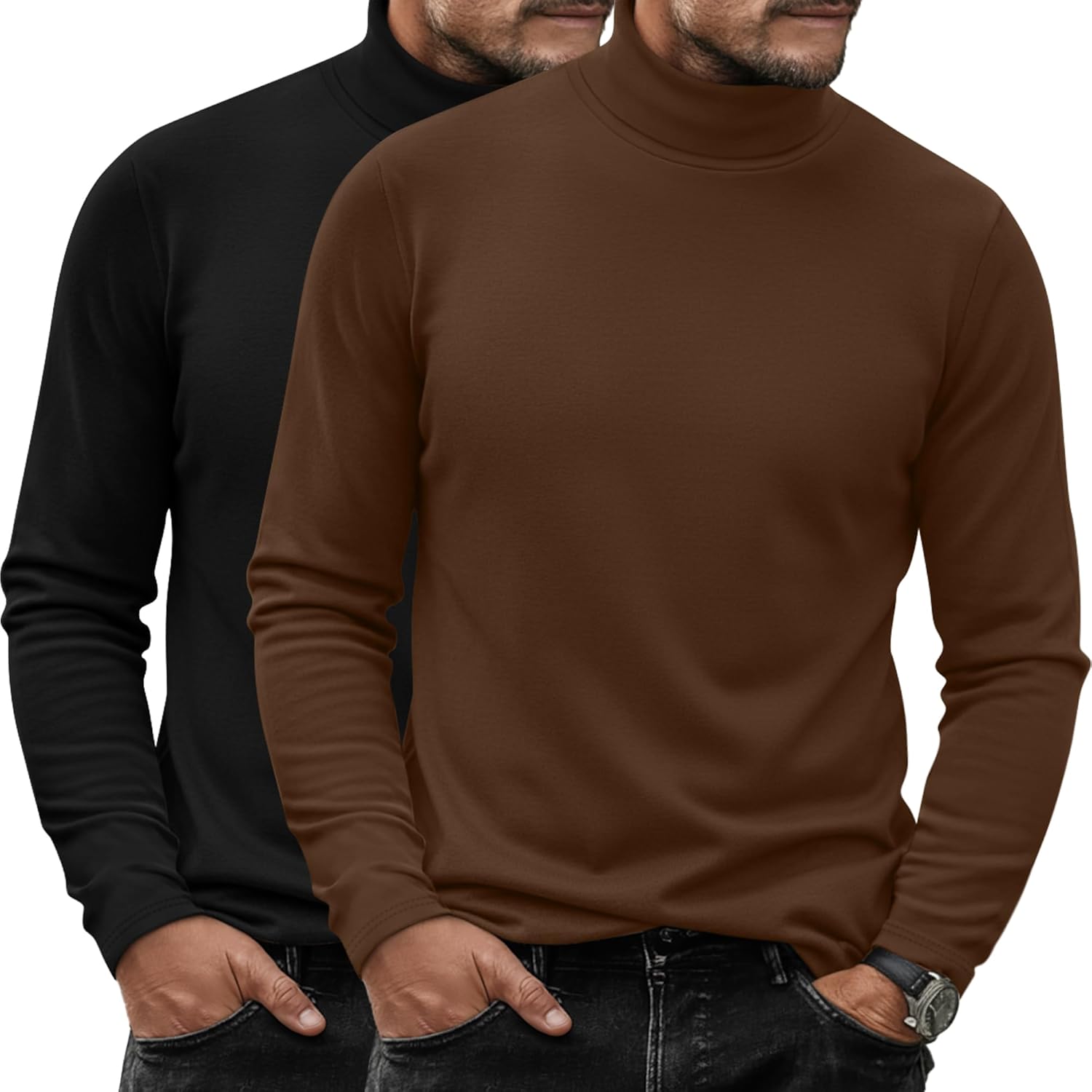 Ficerd 2 Pack Men's Turtle Neck Shirts, Lightweight Cotton Pullover Sweater Slim Fit Mock Turtleneck Knitted Long Sleeve Tops