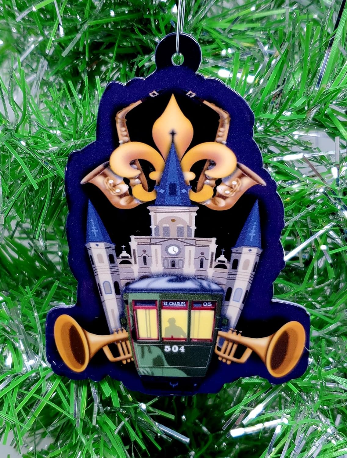 - New Orleans Jazz Themed Christmas Ornament - 2D Resin Plastic Design