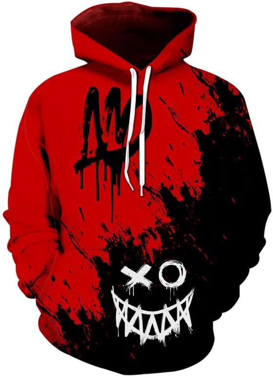 Mens Graphic Hoodies Pullover 3D Print with Pockets, Unisex Anime Black Red Hoodie Sweatshirt for Teen Boys