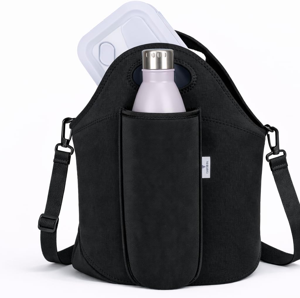 Insulated Lunch Bag Tote with Patented Integrated Bottle Holder – Neoprene Lunch Bag for Work, Travel & Picnics, Leak-Resistant, Easy-Clean Wipeable Lining, Reusable Lunch Tote & Removable Strap