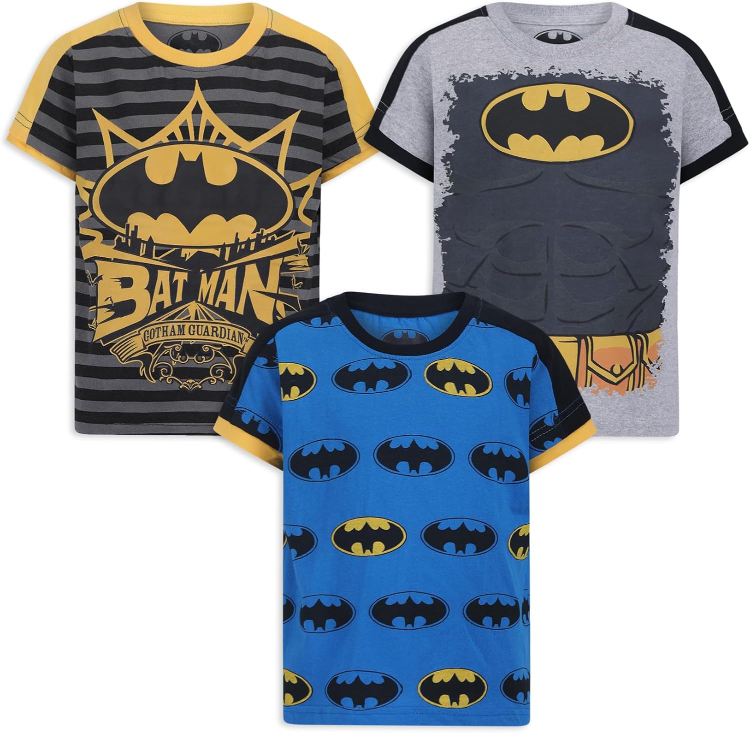 Warner Bros. Boy's 3-Pack Batman Short Sleeve Graphic Tee Shirt Set, Size 6