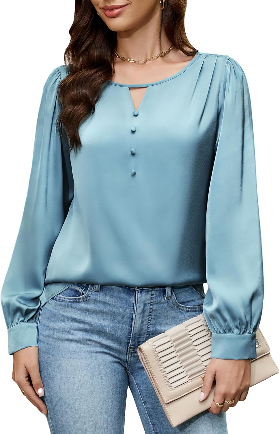 Blooming Jelly Womens Business Casual Outfits Satin Silk Blouses Dressy Long Sleeve Tops Office Work Shirts