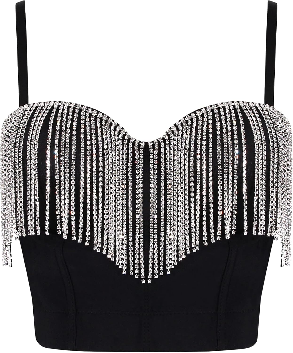 Erinaco Women's Rhinestone Diamond Tank Top Color Beaded Sling Tube Top Bustier Vest Crop Top Sexy Corset Bra Summer