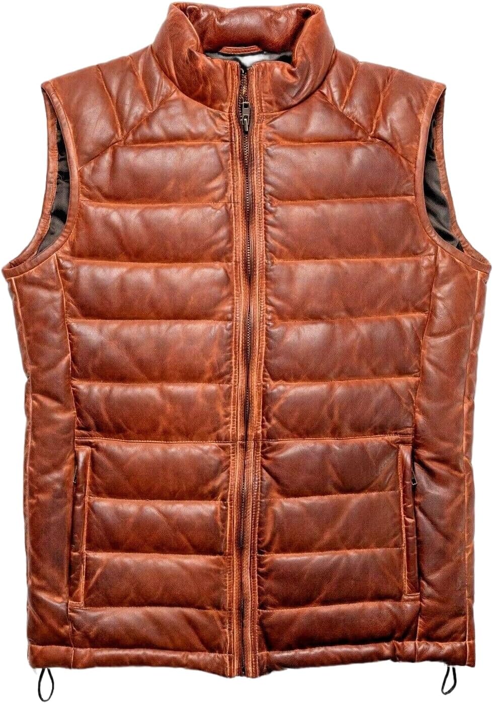 Zulin Brown Distressed Quilted Puffer Down Leather Vest Men| Lightweight vest men | Down leather real men vest |