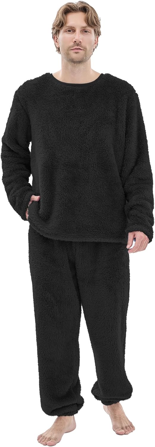 Fleece Mens Pajamas Set, Big and Tall Fluffy Adult Pjs Sets with Tops and Bottoms Fuzzy Warm Soft Winter Loungewear