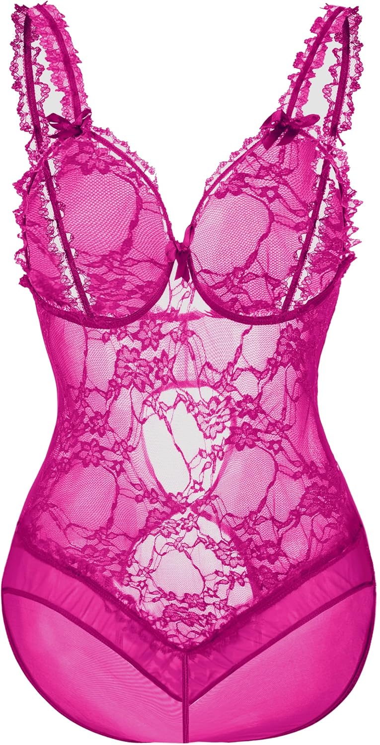 Women Sexy Lingerie Nightwear - One-Piece Bodysuit Nightie Plus Size, Black