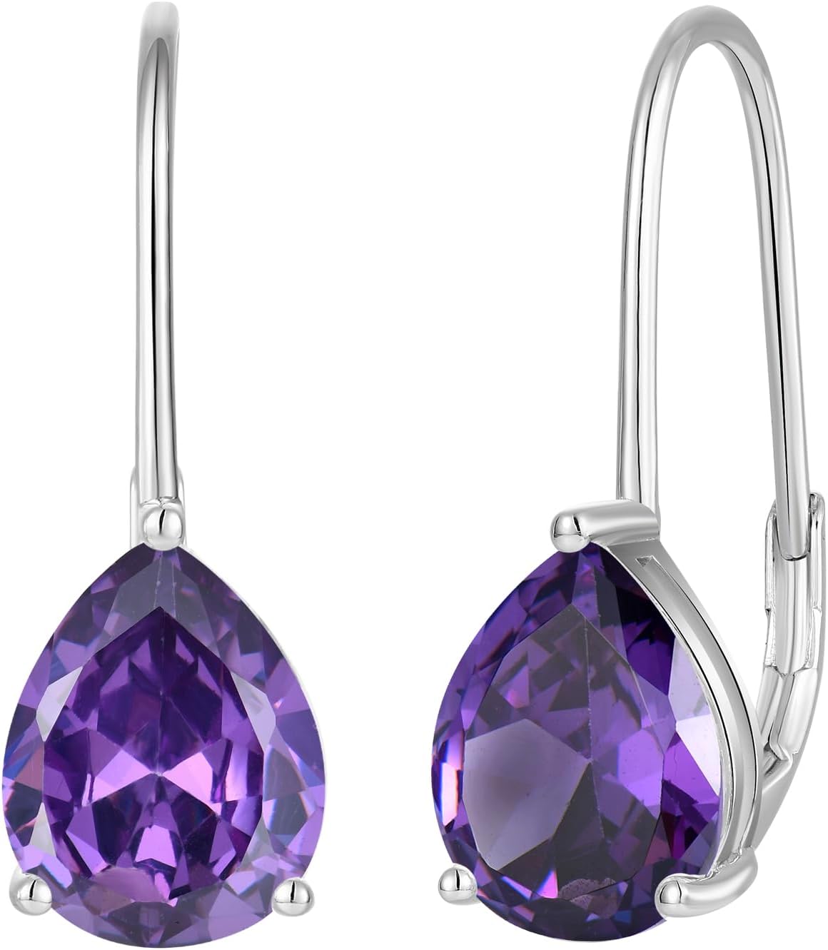 JO WISDOM Women Earrings 925 Sterling Silver 8 * 10mm Pear Cut Cubic Zirconia Leverback Dangle Earrings Birthstone Earrings for Women Hypoallergenic Jewelry