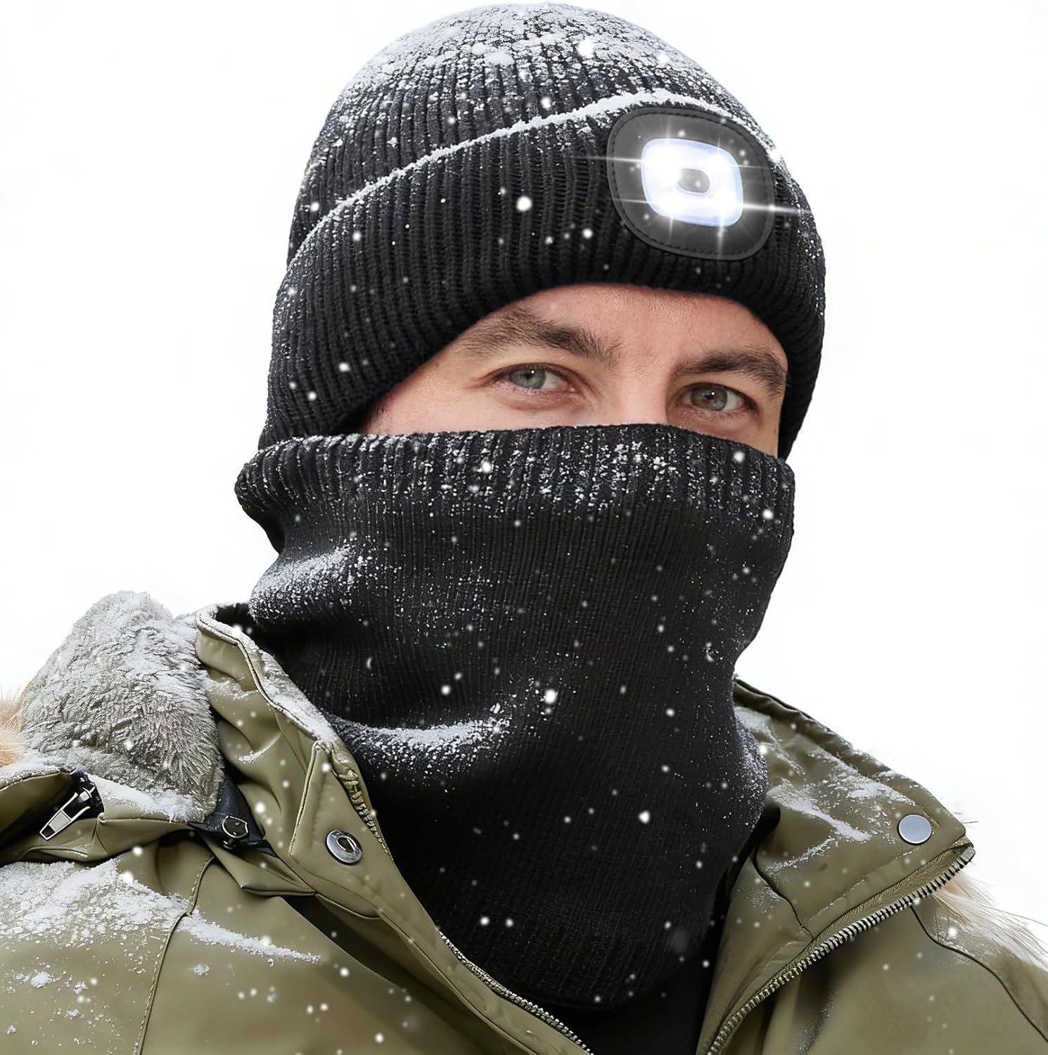 MELASA Winter Fleece Lined Beanie with a Light Scarf Gift Set for Men, Ski Mask Thermal Cold Weather Gear for Outdoor