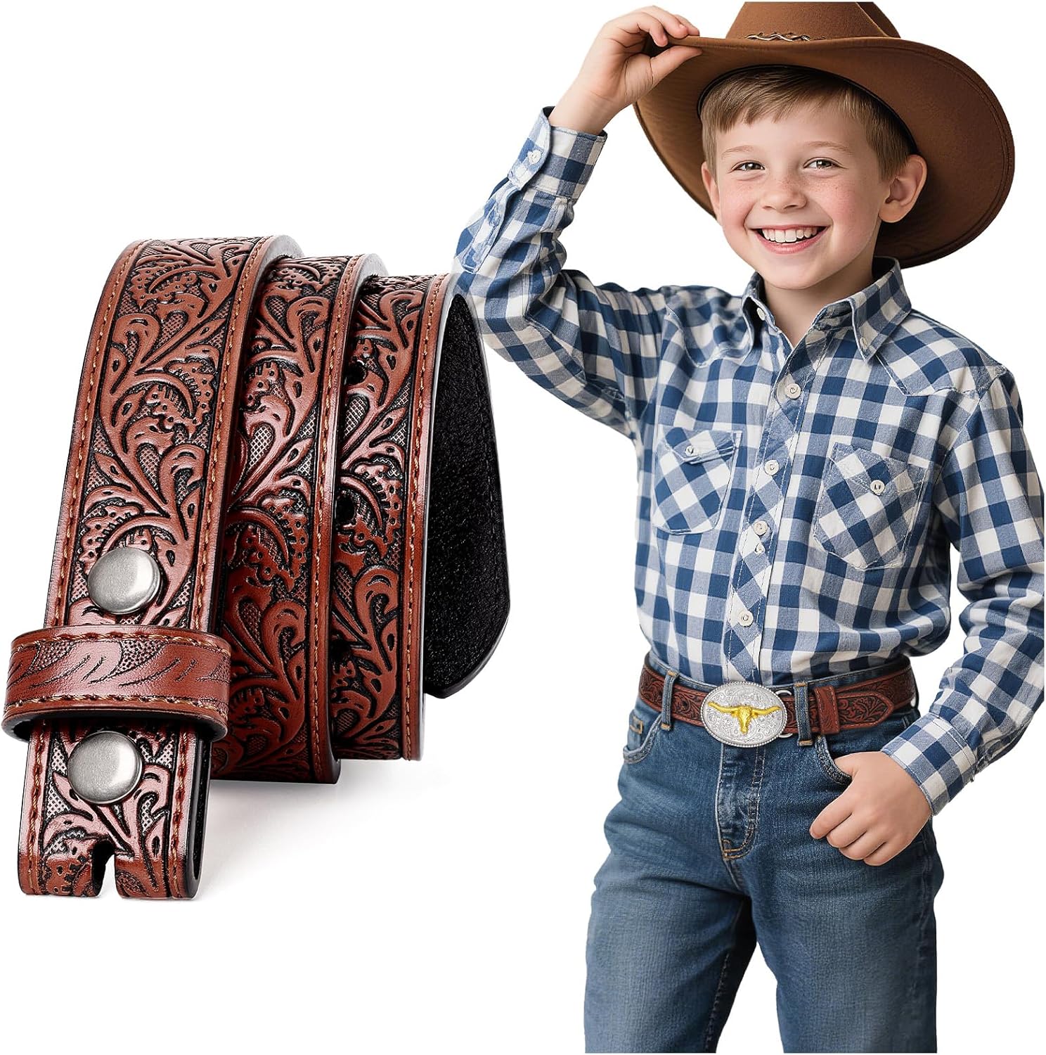 BELTROAD Western Belt Strap for Kids Boys Girls Toddler Genuine Leather Belt Cowgirl Cowboy Kids Western Belts for Jeans Gift