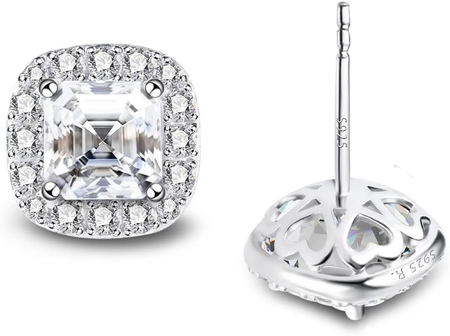 Stunning Flame 18K White Gold Plated Halo Cluster Cubic Zirconia Earrings/Sterling Silver Stud Earrings for Women, Mom