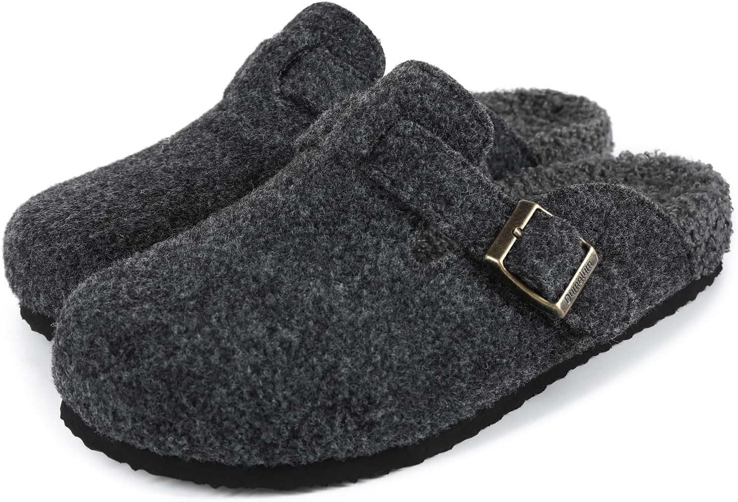 Dumalum Clogs for Women Mens Fleece Lined Slip-On Sandals Womens Slipper with Fur Cork Footbed and Adjustable Buckle Dark Grey