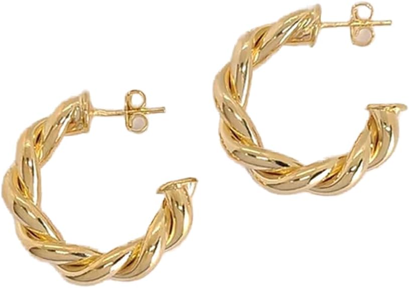 Gold Tone Hoop Earrings for Women, 18k Yellow Gold Filled (1" Classic Chunky Twist)