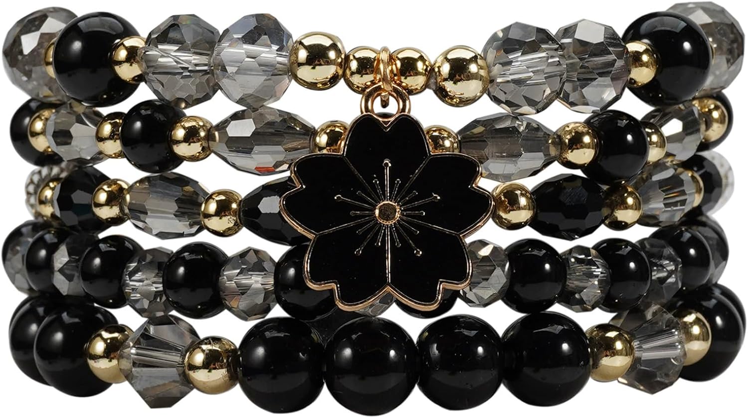 Caiyao 5Pcs Bohemia Multilayer Floewr Crystal Glass Beaded Bracelet Set Colorful Stackable Flower Beaded Friendship Stretch Bracelets for Women Men Summer Beach Boho Hawaii Holiday Jewelry Gifts