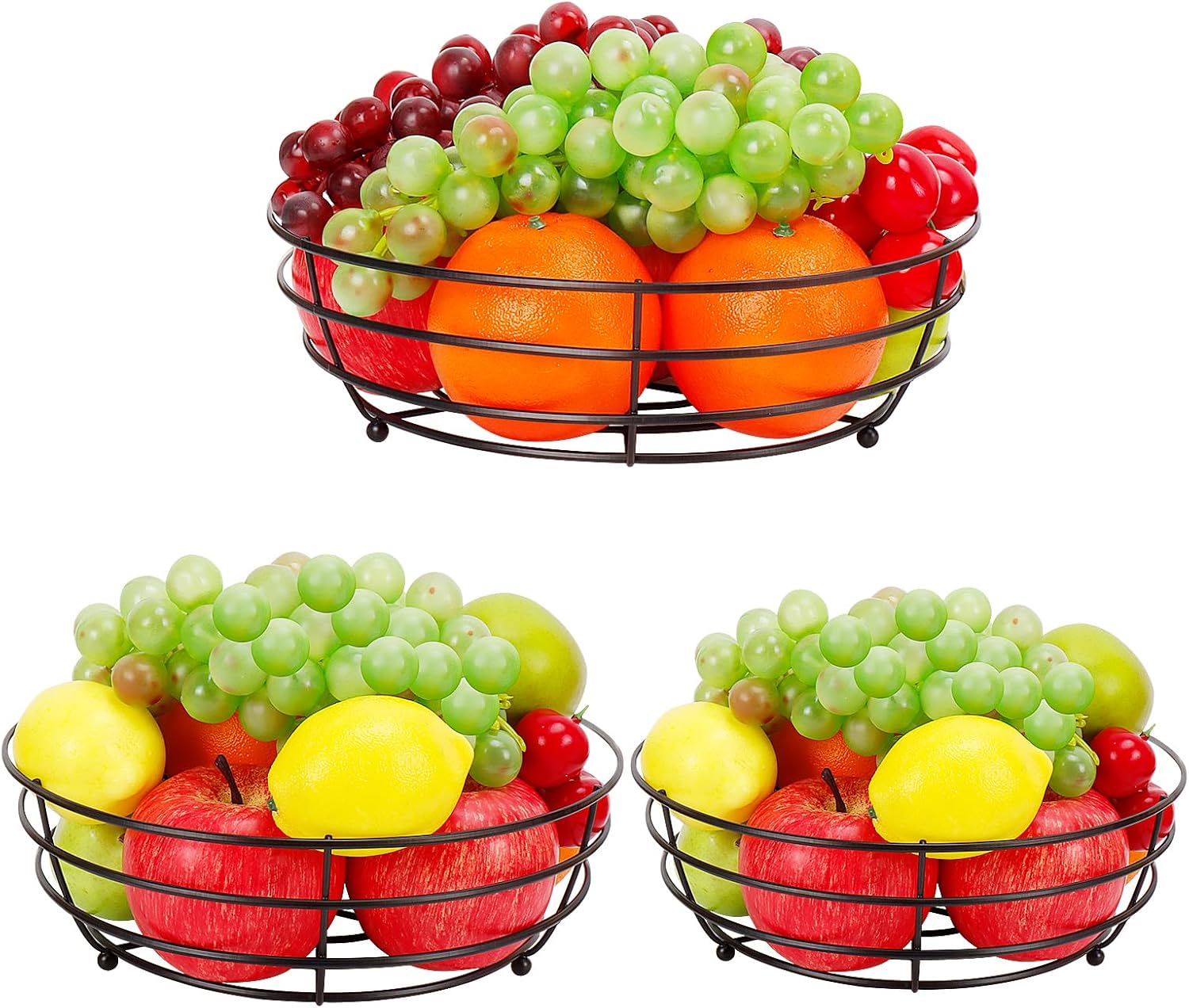 Livabber Wire Fruit Bowl, Metal Fruit Basket For Kitchen Counter, Large Capacity Storage Holder Tabletop Organizer For Vegetables Breads Snacks (Black, 3 Pack)