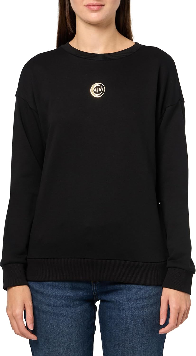 Armani Exchange womens Circle Moon Graphic French Terry Crewneck Sweatshirt