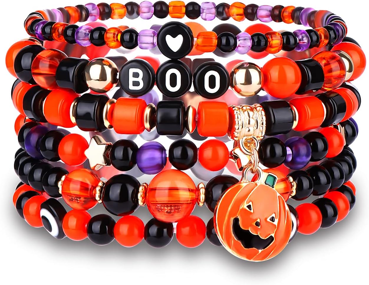 Halloween Beaded Bracelets for Women BOO Pumpkin Charm Bracelet Orange Black Bead Stretch Bracelets Halloween Themed Party Favors Holiday Gifts