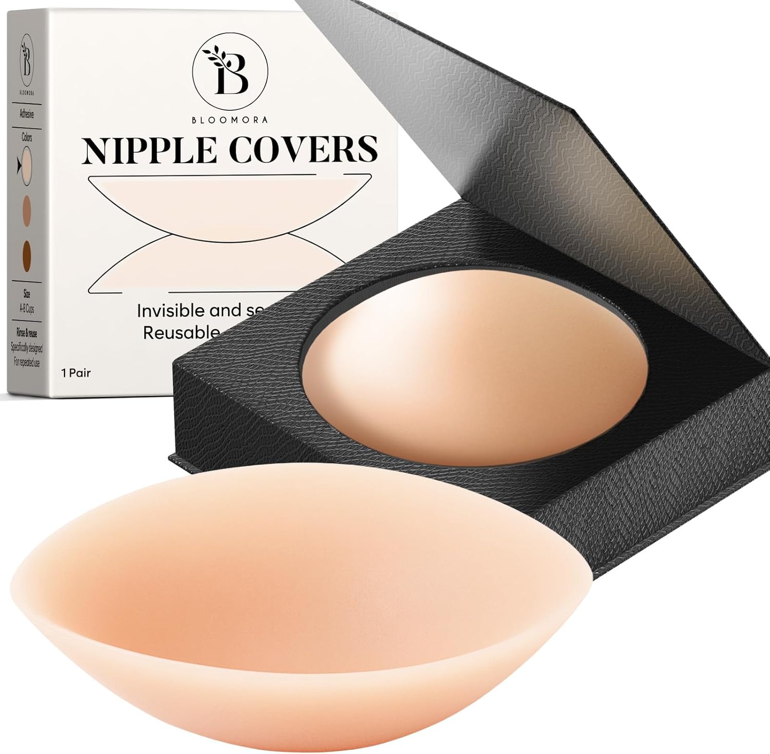 Nipple Covers for Women – Reusable Sticky Silicone Nipple Pasties with Travel Case – Seamless, Adhesive & Invisible
