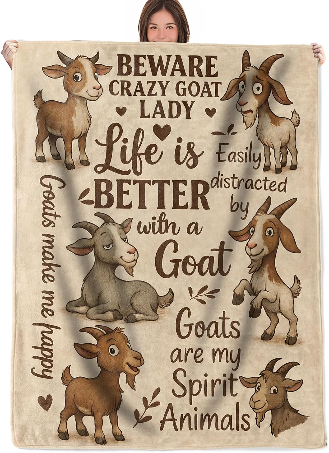 Goat Lover Throw Blanket Gifts for Boys Girls Kids Adults, Cute Cartoon Goat Flannel Blankets for Travel Sofa Living Room Decor 50"X60"