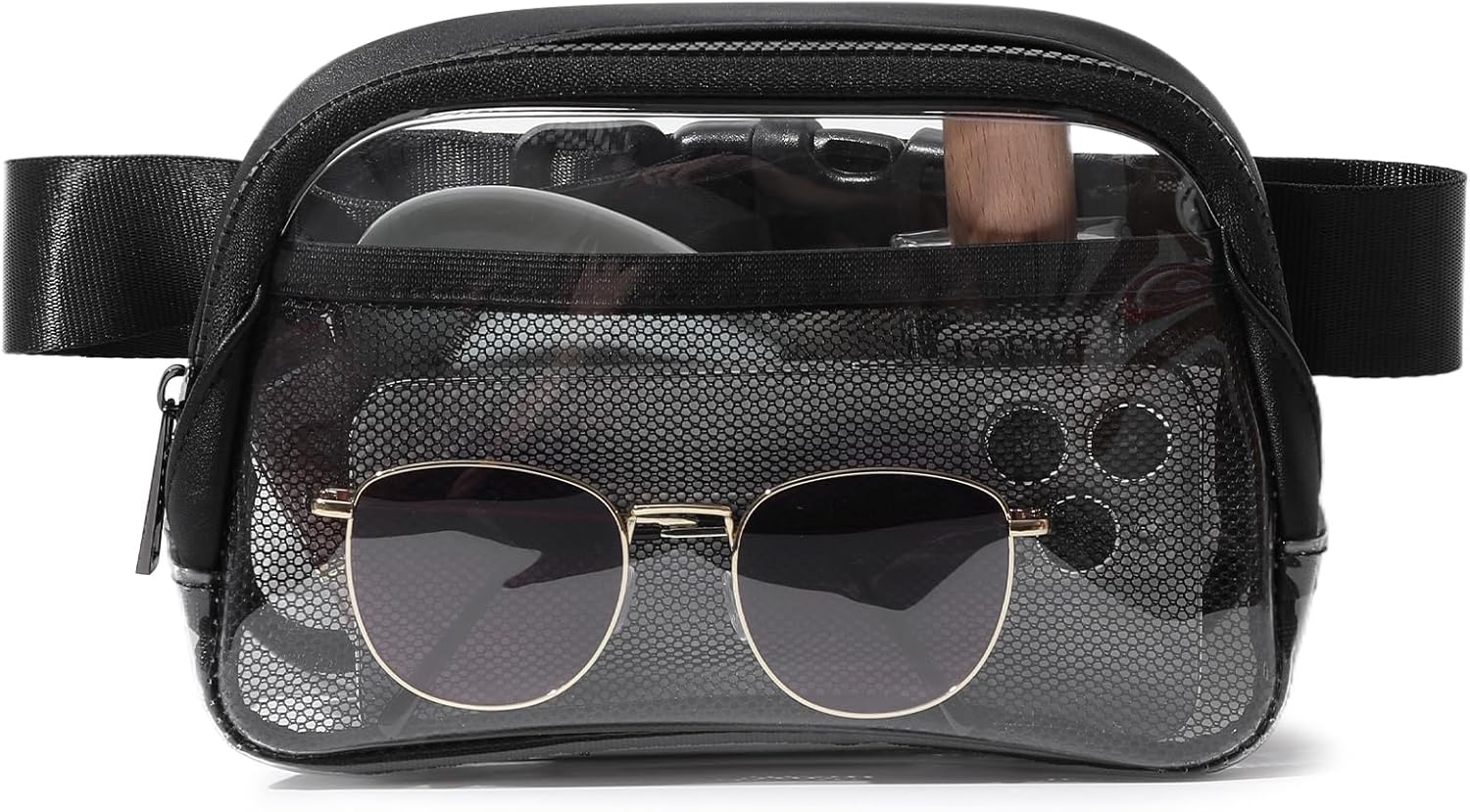- [Note] Please align the zipper before closing due to the clear belt bag's curved design.