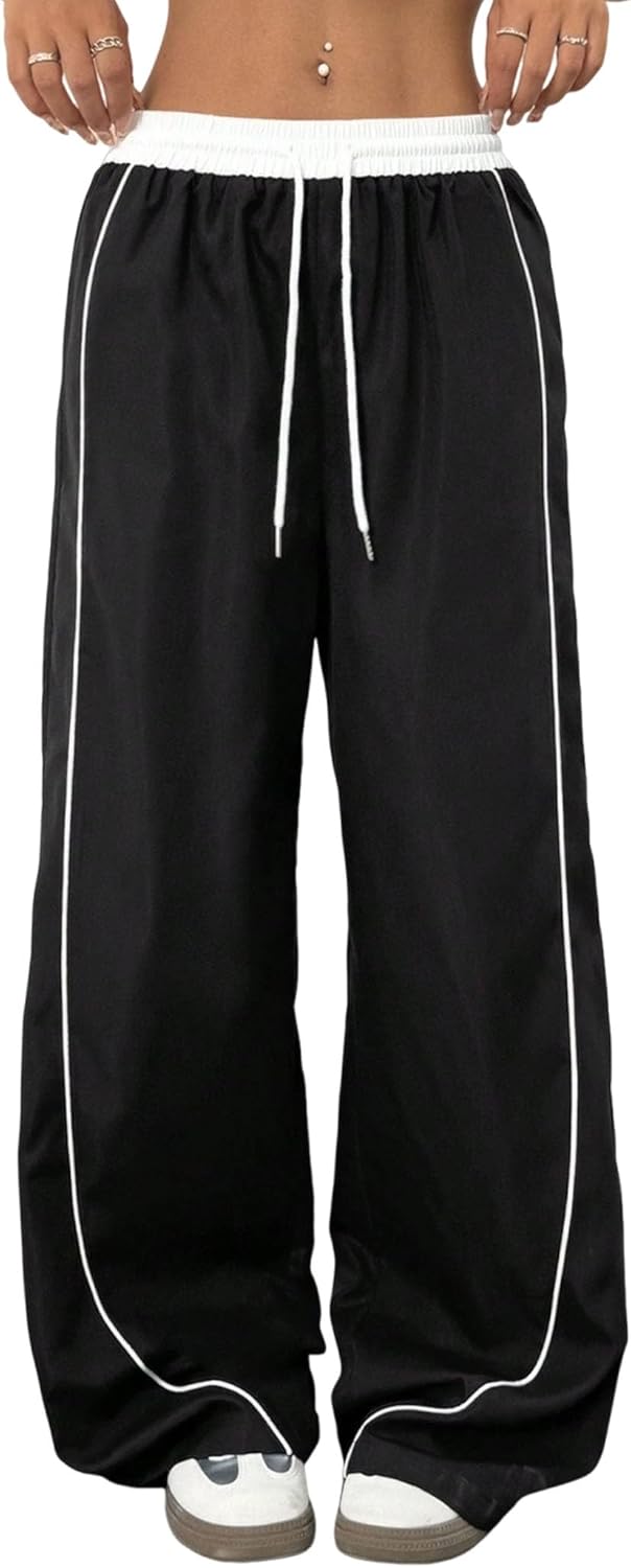 ZAFUL Womens Parachute Pants Y2K Wide Leg Cargo Sweatpants Drawstring Waist Jogger Pants with Pockets
