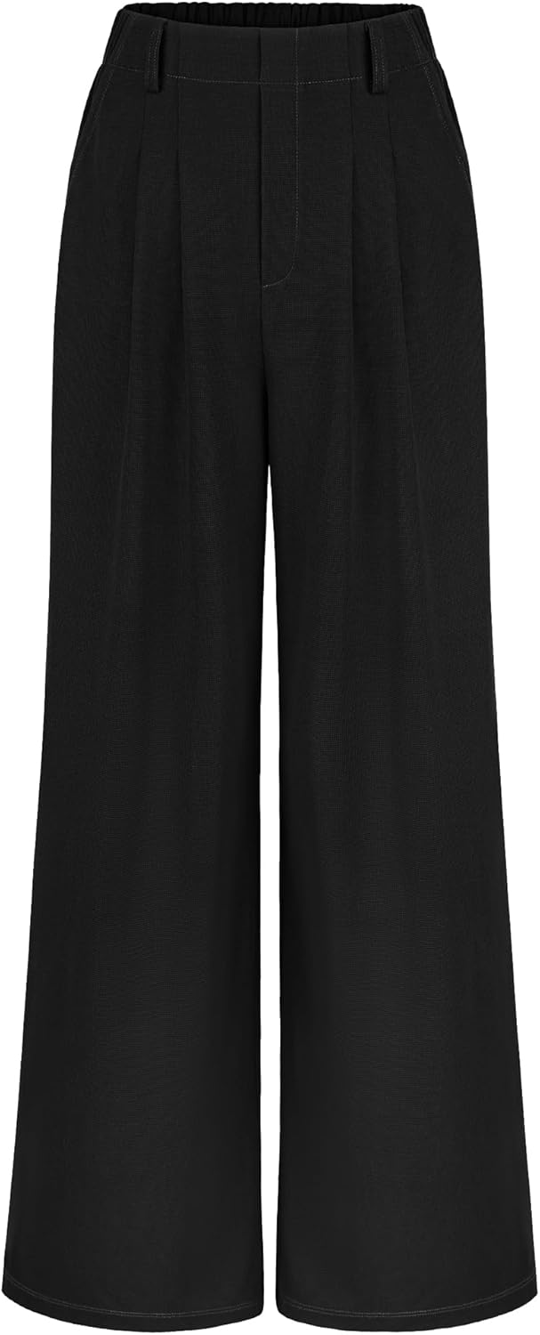 SeSe Code Women's Wide Leg Pants Elastic High Waisted Waffle Knit Casual Slacks Work Business Palazzo Trousers with Pockets
