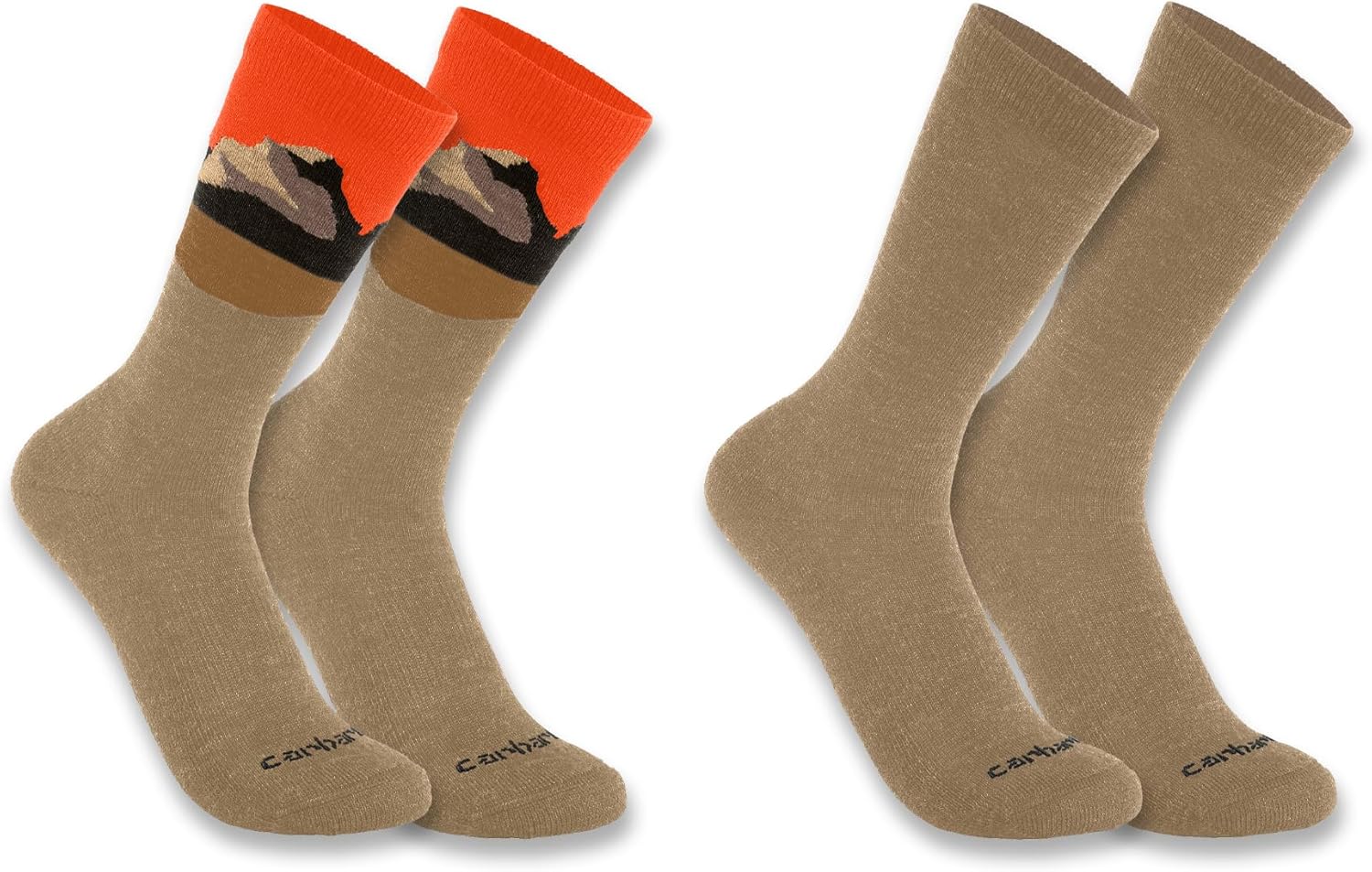 Carhartt Men's SC9592M Midweight Synthetic-Wool Blend Mountain Crew Sock 2-Pack