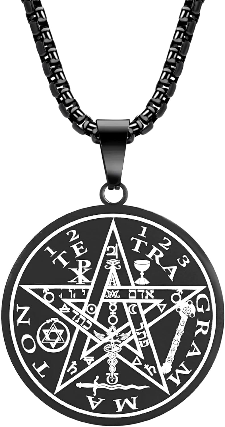 Tetragrammaton Pentacle Necklace for Men Pentagram Protection Amulet Wicca Jewelry, Five-pointed Star, Magical,The Ancient Power Name of God Stainless Steel 24 inches