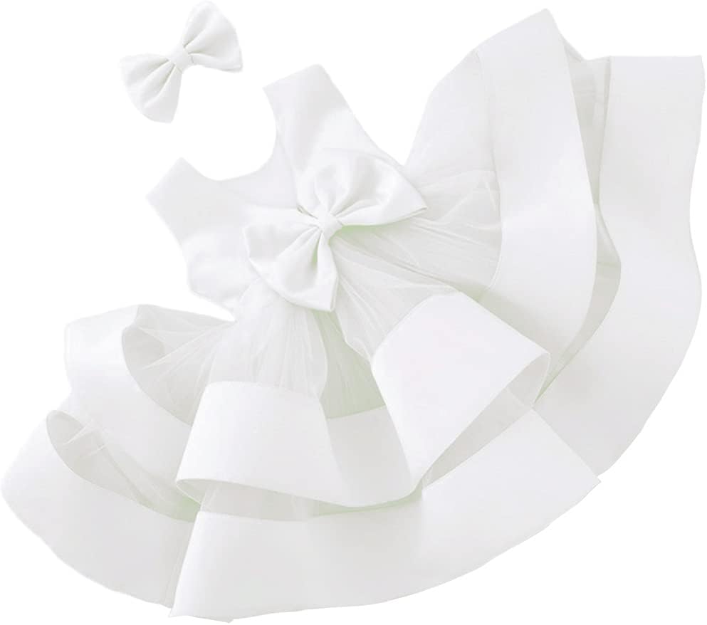 AIMJCHLD 0-6T Baby Girls V Backless Flower Dress Pageant Party Wedding Gown Dresses with Hair Bow