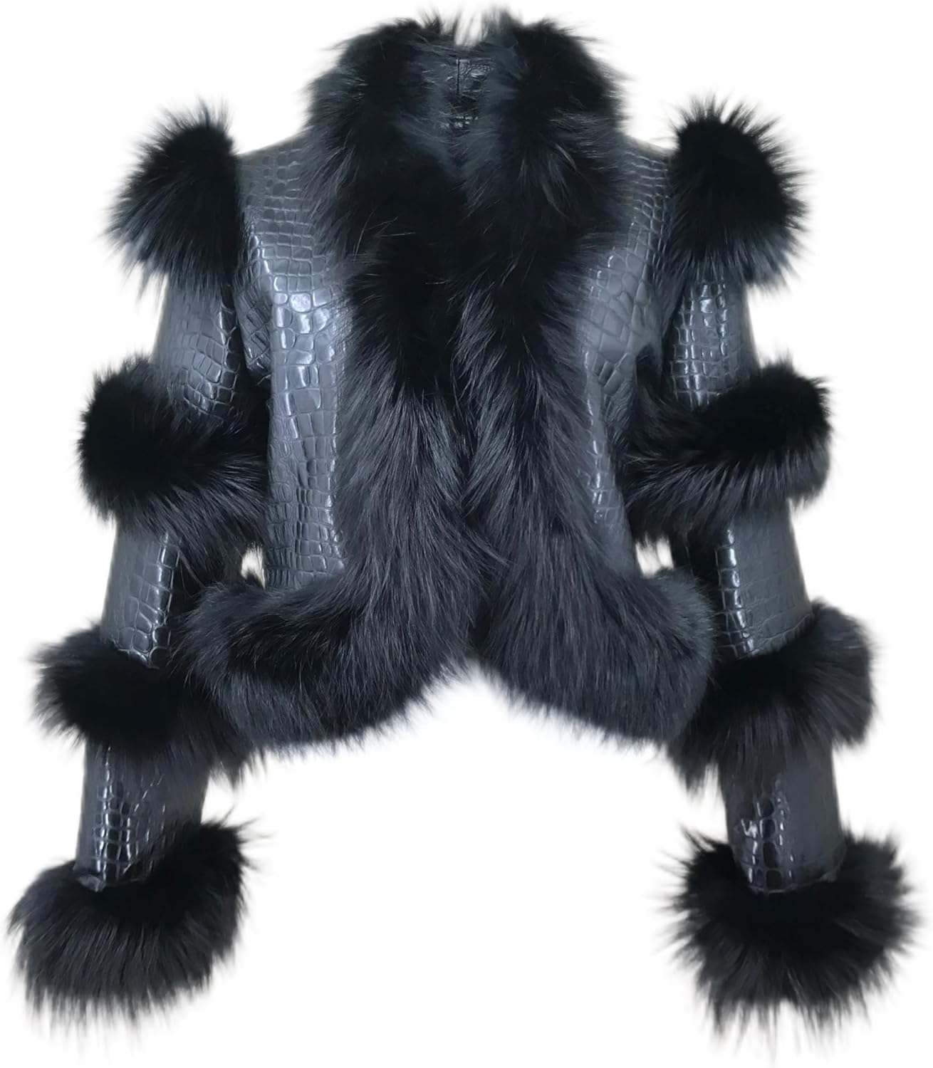 LVCOMEFF Women Sheep Leather Cropped Jacket Bolero Top Coat Motorcycle Jacket With Fox Fur Layer Long Sleeve Python Pattern