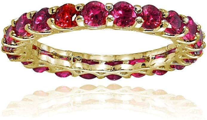 Ice Gems Sterling Silver Created Ruby 3mm Round-cut Eternity Band Ring