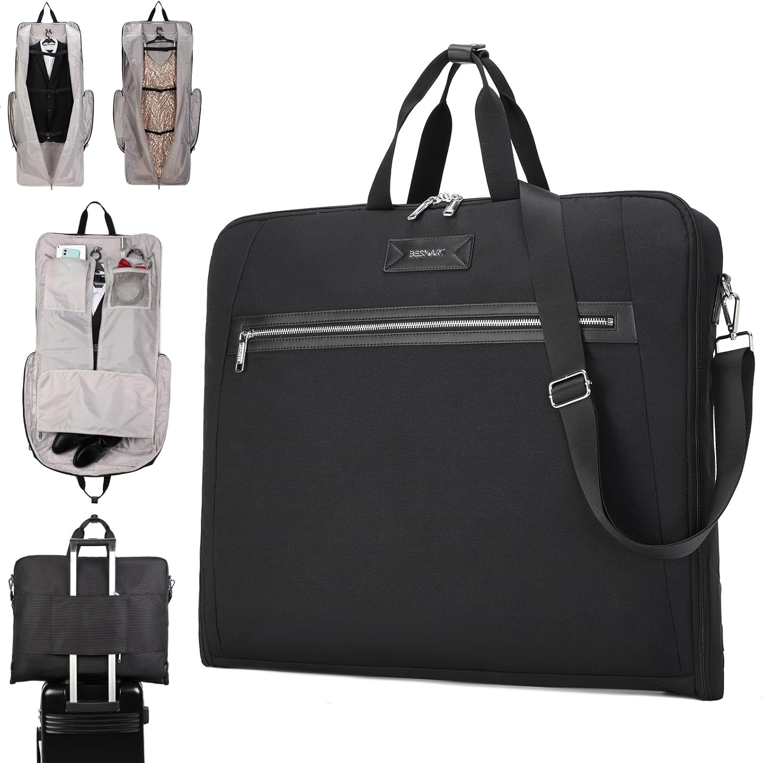 - 👨💼👍【4 Carry Ways】: Carrying this travel garment bag is a breeze, thanks to the detachable shoulder strap that allows for comfortable hands-free transportation in a long way trip as a shoulder bag or crossbody bag. And you can use it as a garment duffle handbag or a waterproof traveling suit bag. The carry on garment bag features a trolley sleeve to securely attach the dress bag to your suitcase for convenient boarding or traveling. A waterproof garment duffle bag for traveling is a good idea