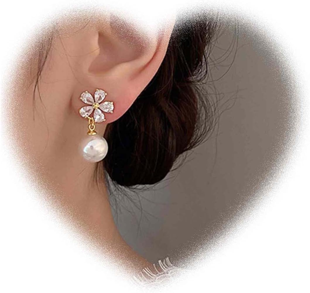 Gold Alloy Crystal Pearl Dangle Earrings - Vintage Floral Pearl Drop Studs - Perfect for Special Occasions & Everyday Wear