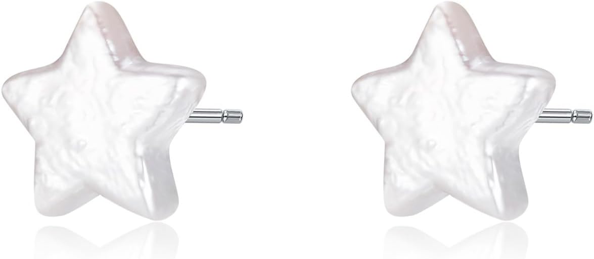 Natural Freshwater Pearl Stud Earrings for Women, Dainty Star/Lover Hear Charm Pendant Baroque Pearl Ear Jewelry Studs, Minimalist Gold Pearl Earrings Eardrop for Mom Lover Her