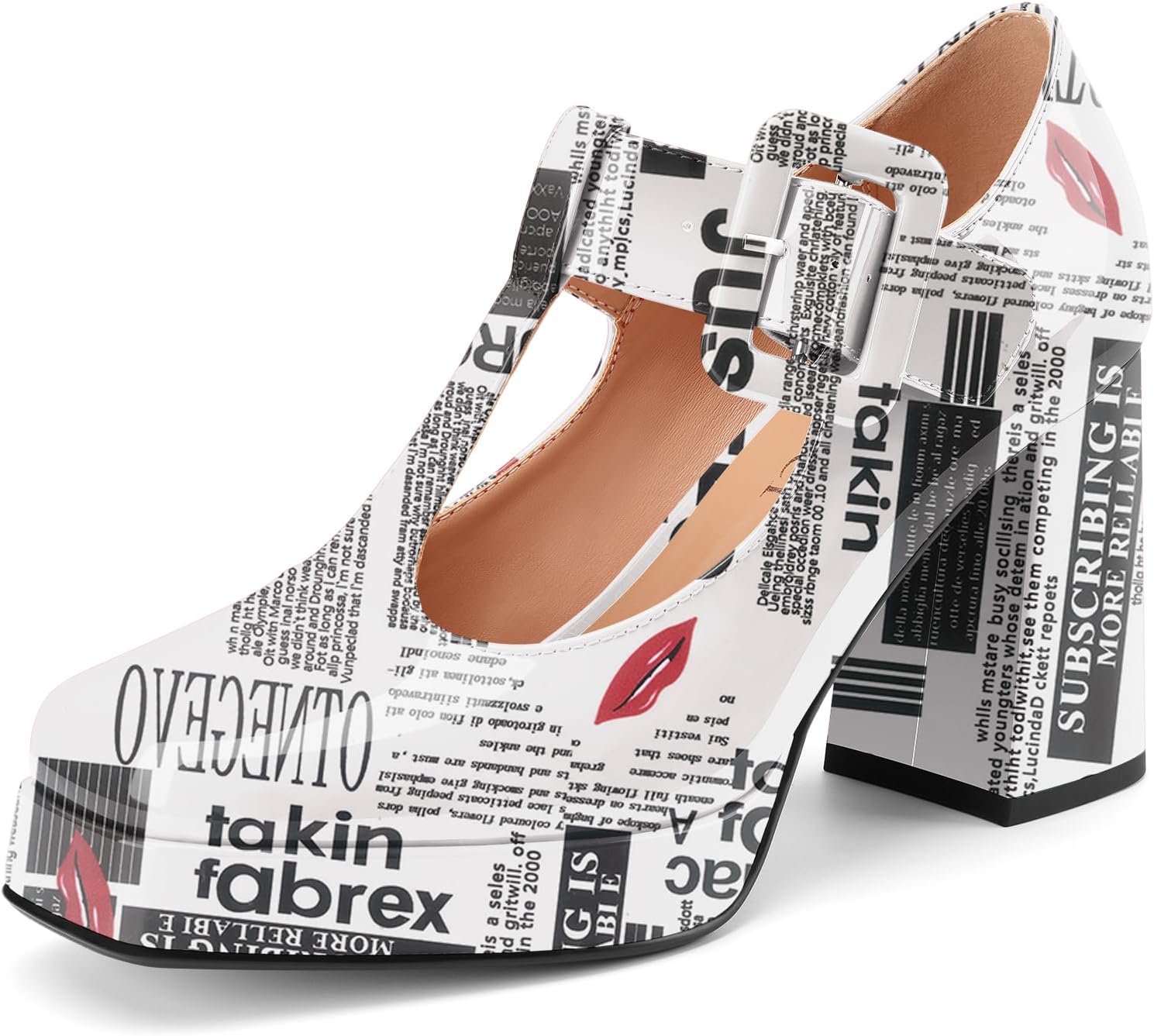 Women's T-Strap Mary Jane Platform Chunky Block High Heels Closed Square Toe Casual Dress Comfortable Patent Leather Pumps Shoes
