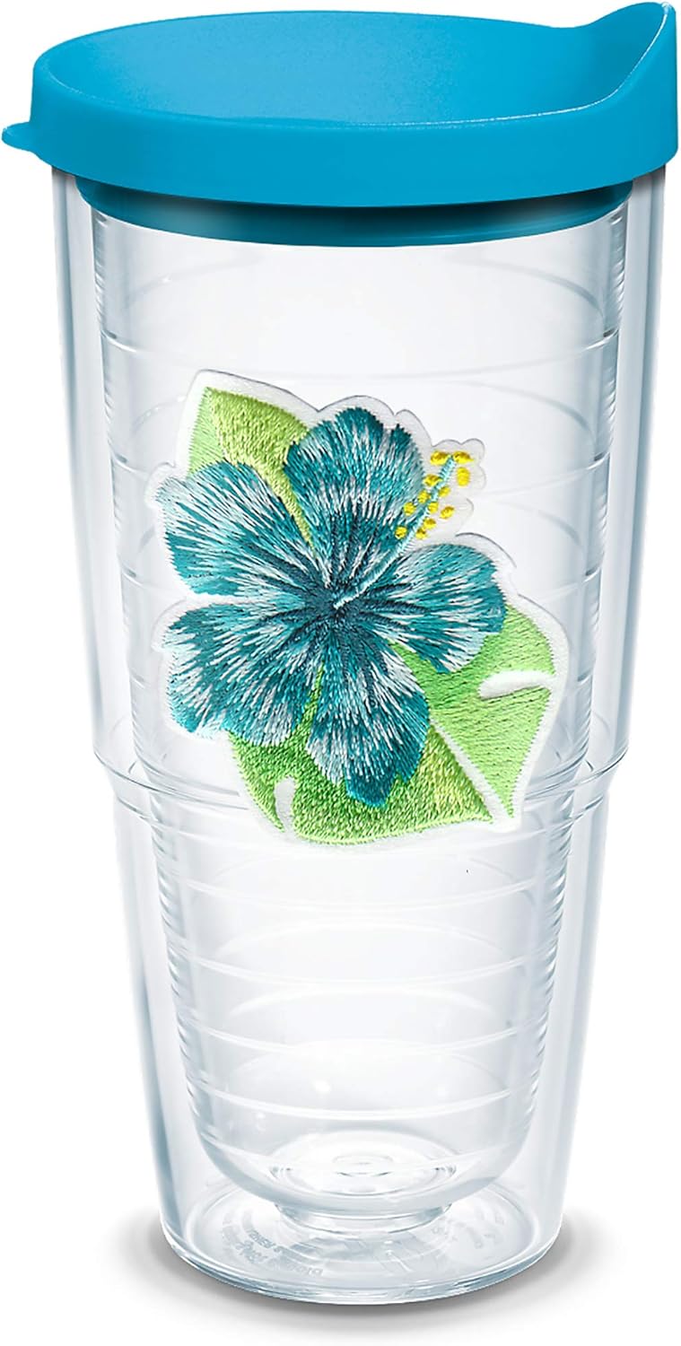 Tervis Tropical Hibiscus Collection Made in USA Double Walled Insulated Tumbler Travel Cup Keeps Drinks Cold & Hot, 24oz, Island Hibiscus Teal