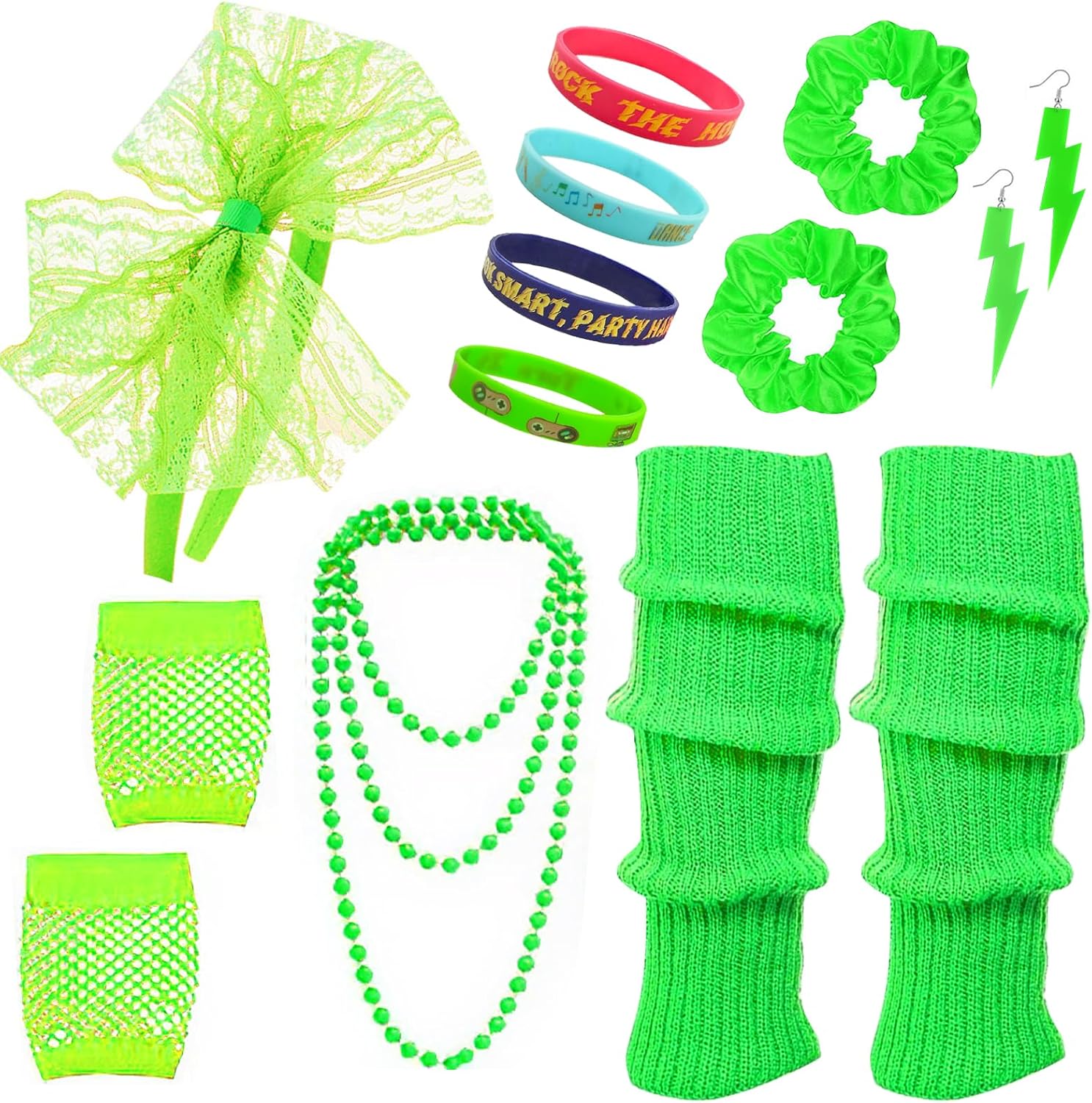 80s 90s Costumes Accessories for Women 1980s Neon Headband Earrings Leg Warmers Party Outfit Set