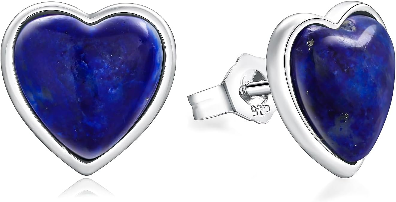 AIBAO Real Turquoise/Lapis Lazuli/Malachite Stud Earrings for Women Western Boho Jewelry Hypoallergenic 925 Sterling Silver Earrings Studs