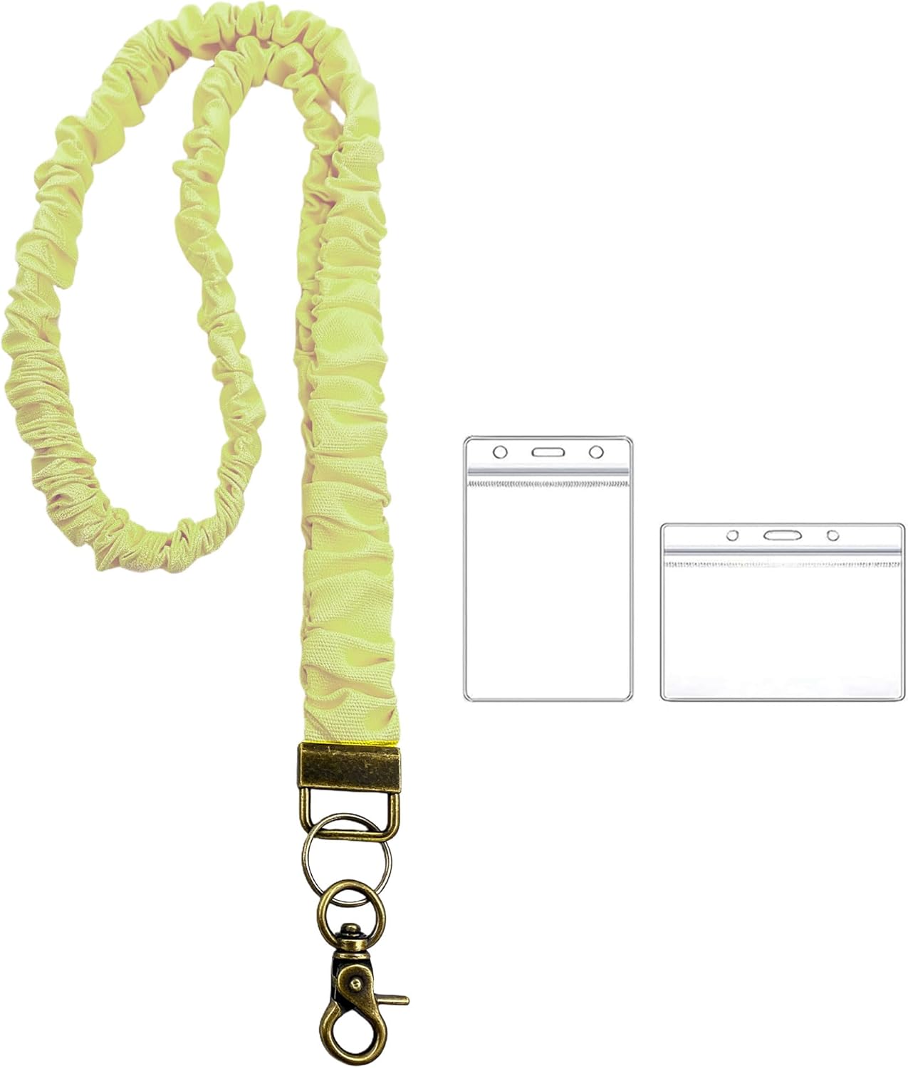 Stretchy Scrunchie Lanyard for ID Badges and Keys, Cute Retractable Keychain Holder, Teacher Lanyard for Women (Yellow, 1 Pcs)