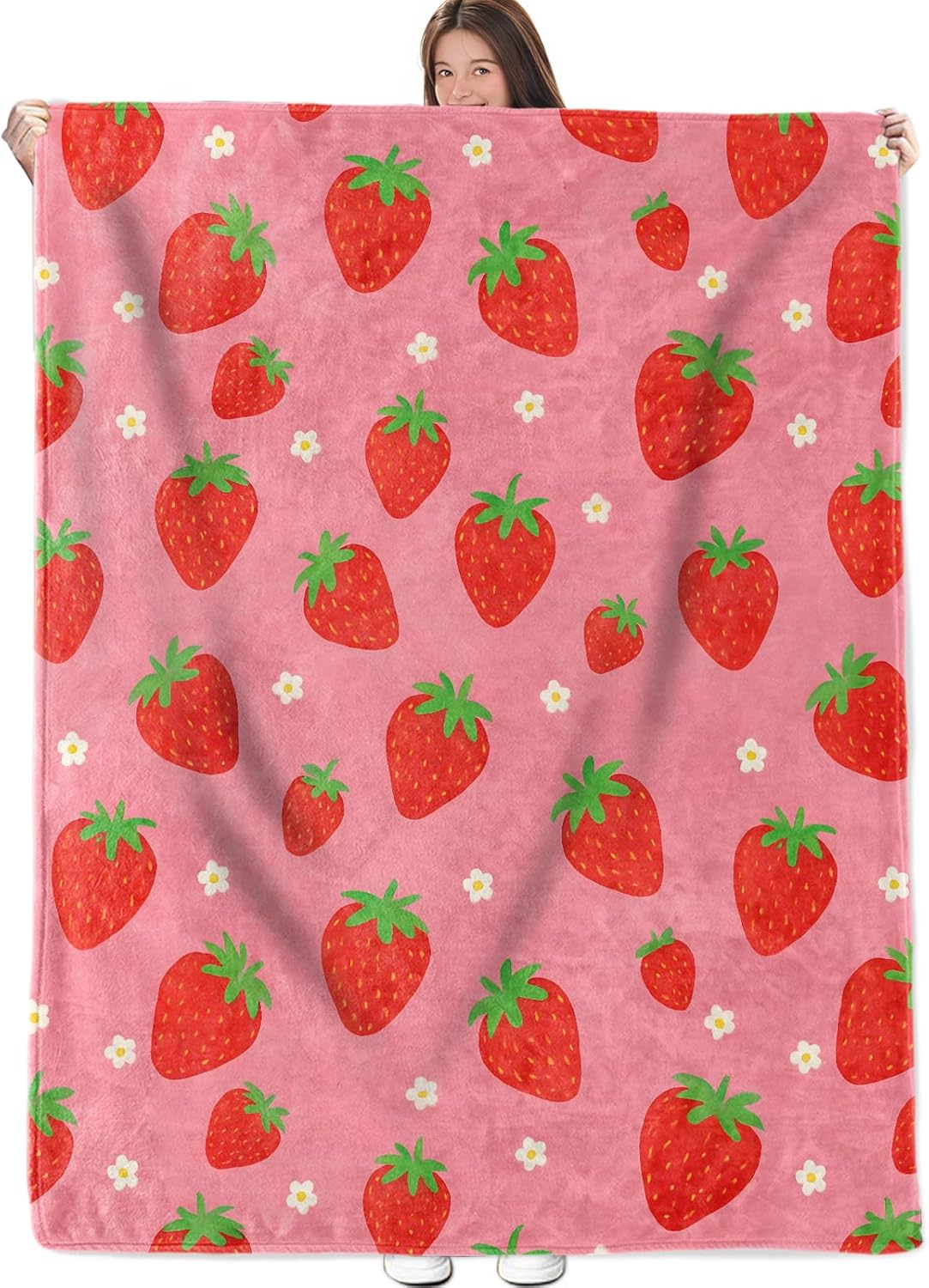 ZNHP Cute Strawberry Blanket, Fruit Pattern Flannel Throw, Soft Cozy Lightweight Throws Blankets for Women Kids Girls, Cartoon Playful Home Decor for Sofa Couch Bedroom Home, 60x50 Inch