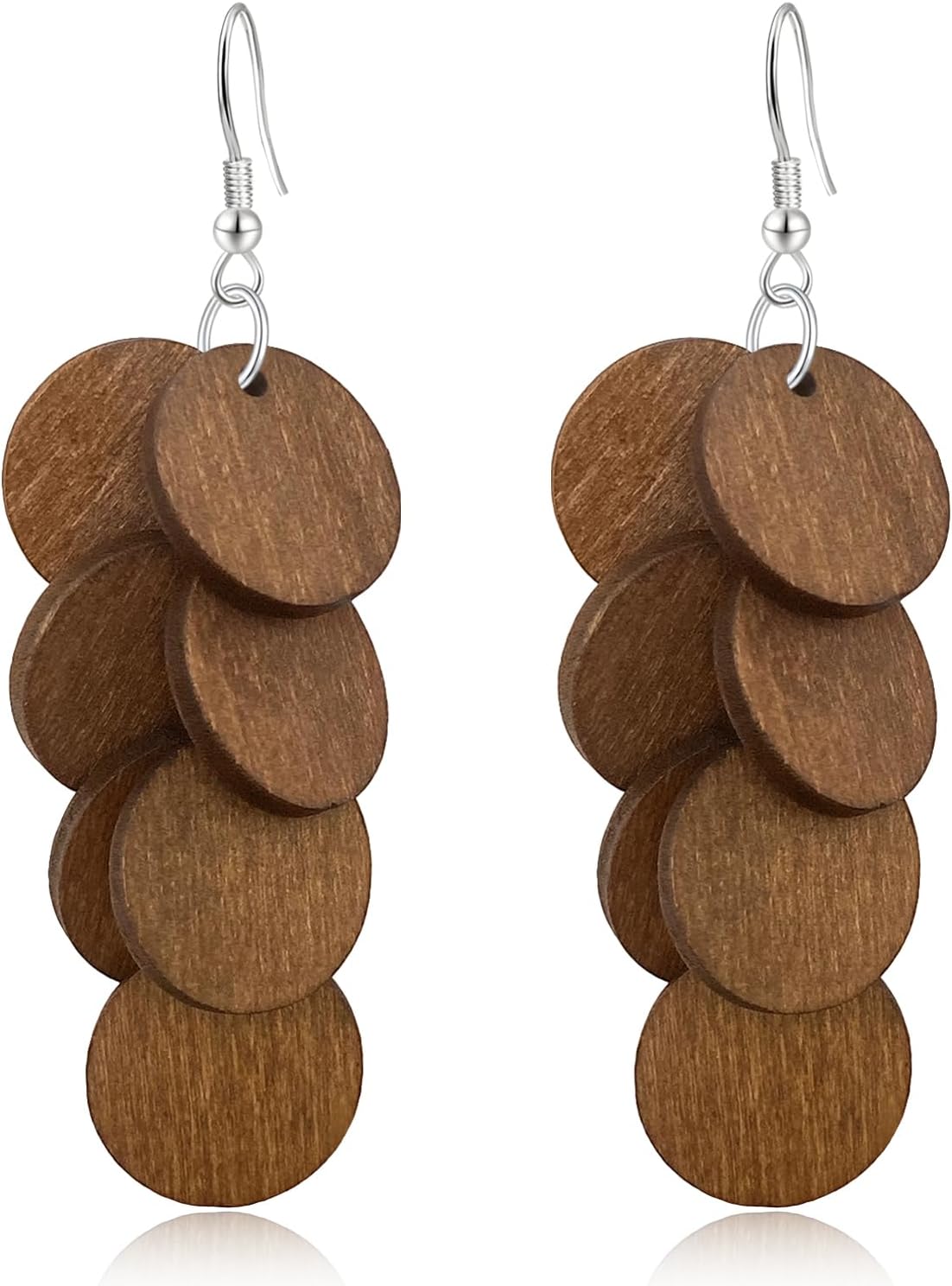 Bohemian Wooden Round Geometry Lightweight Dangle Drop Earrings Natural Wood Circle Fringe Hook Earrings