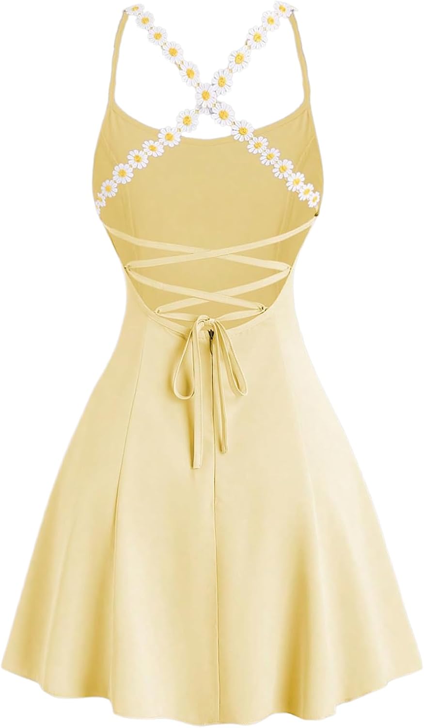 WDIRARA Women's Criss Cross Backless Sleeveless Mini Cami Dress Flared A Line Dresses