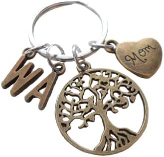 Custom Bronze Family Tree Keychain with Letter Charms, Gift for Mom or Gift for Grandma
