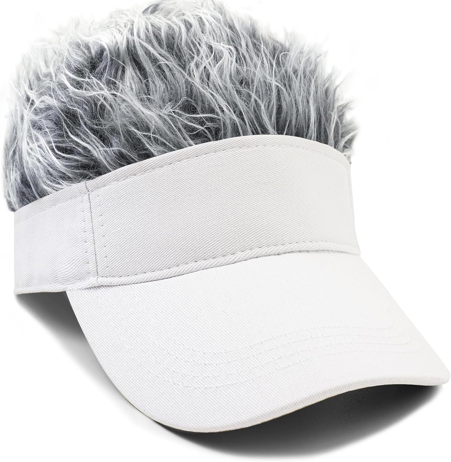 Mens Visor Cap with Fake Hair Novelty Golf Hats Wig Hat Spiked Adjustable Baseball Cap