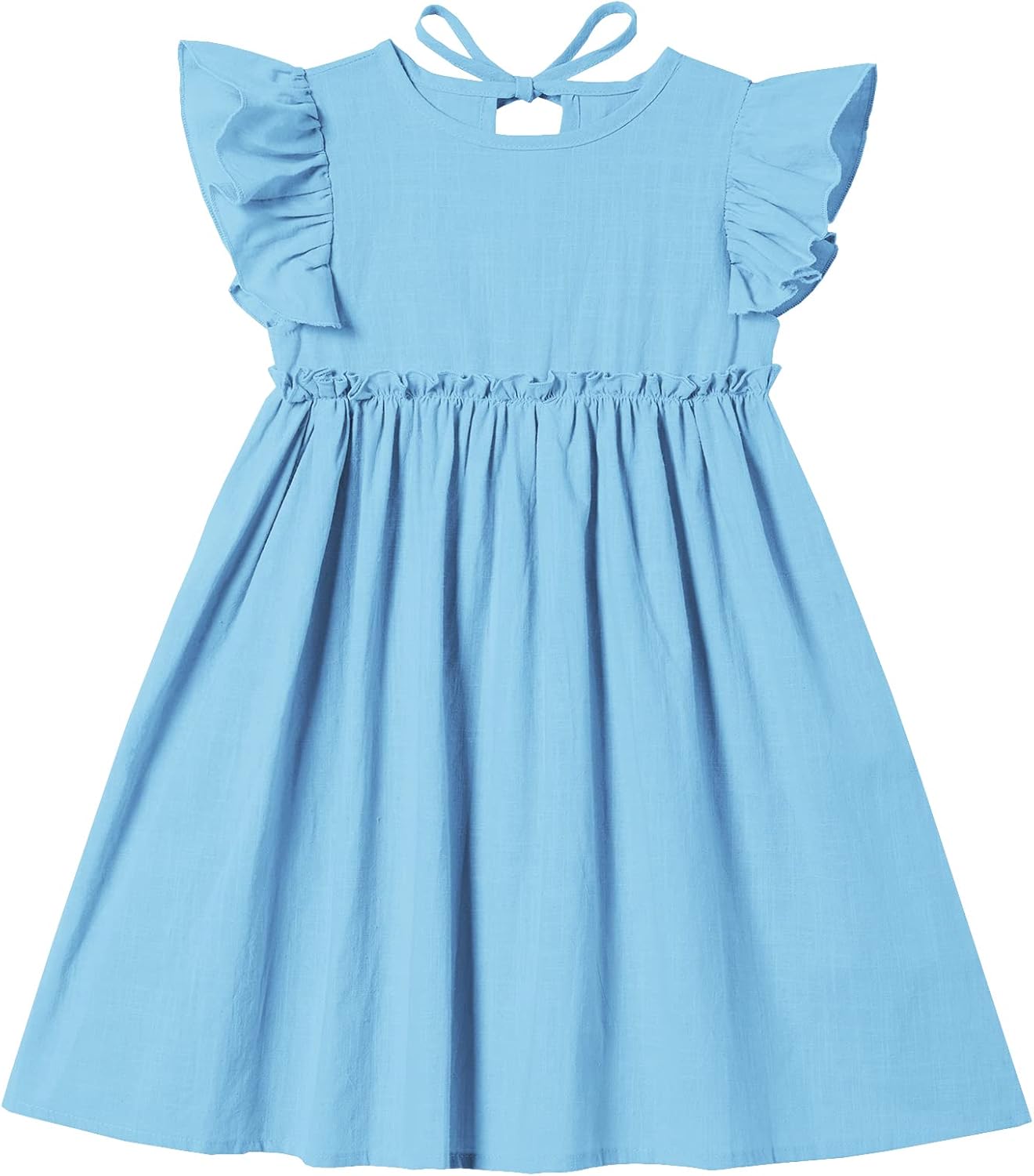 Toddler Baby Girls' Cotton-Linen Sundress with Ruffle Halter Sleeveless and Swing Dress