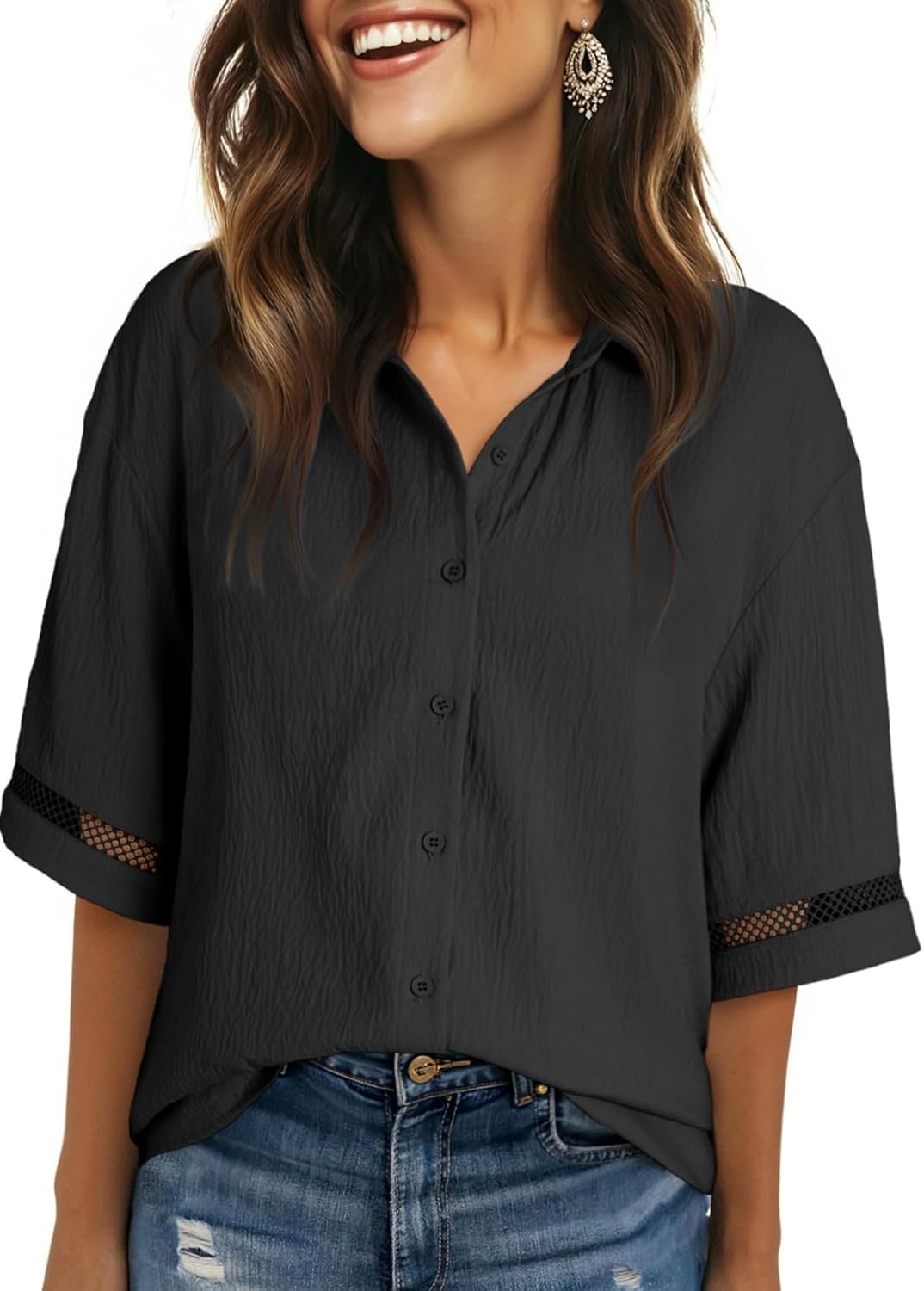 Dokotoo Womens Summer Tops Dressy Casual V Neck Short Sleeve Shirts Solid Button Down Blouses Tops