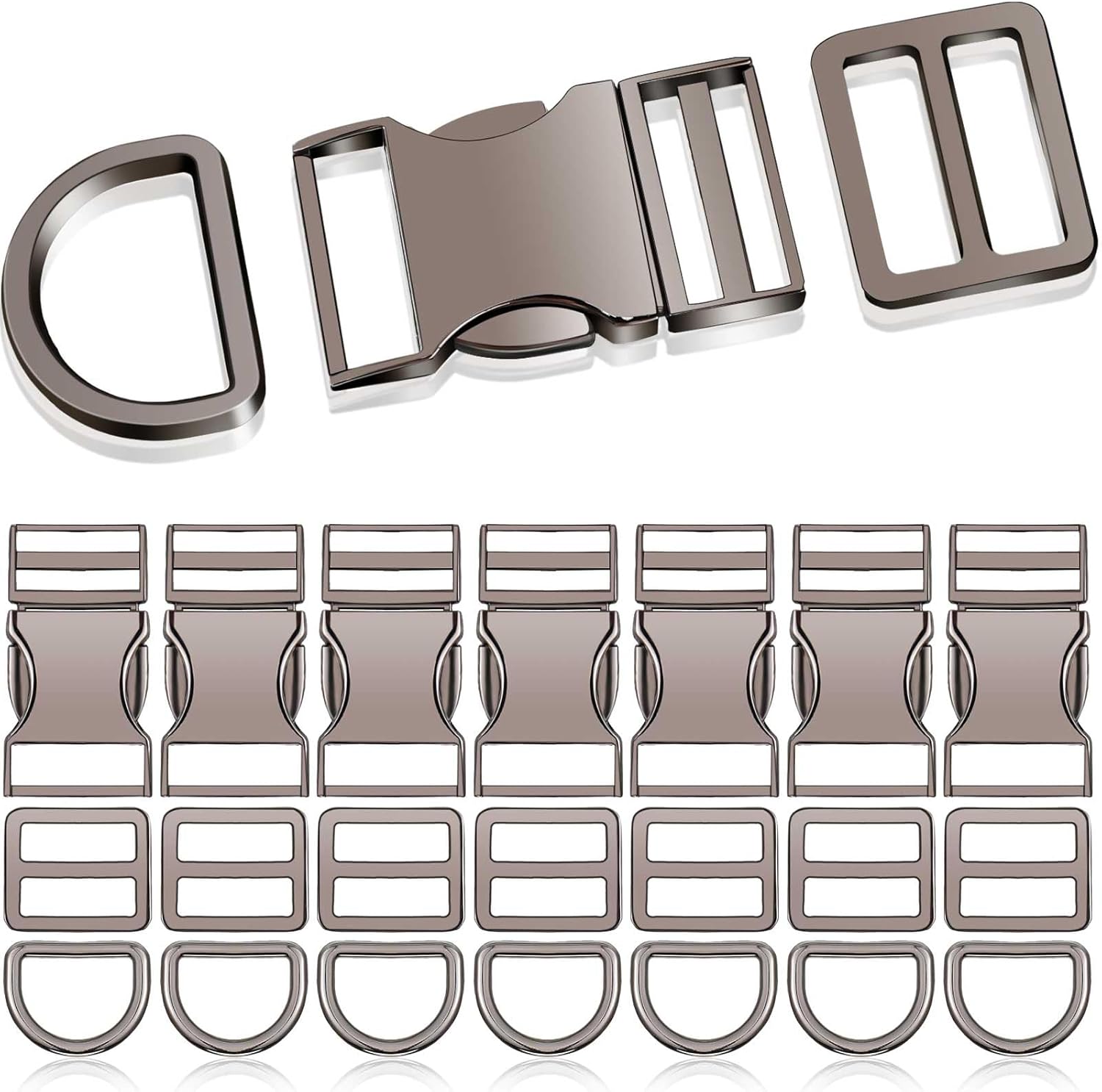 Zeyune 32 Pack Metal Buckles for Straps Dog Collar, 8 Pcs Side Release Buckle 8 Pcs D Rings 16 Pcs Tri Glide Slides Buckles