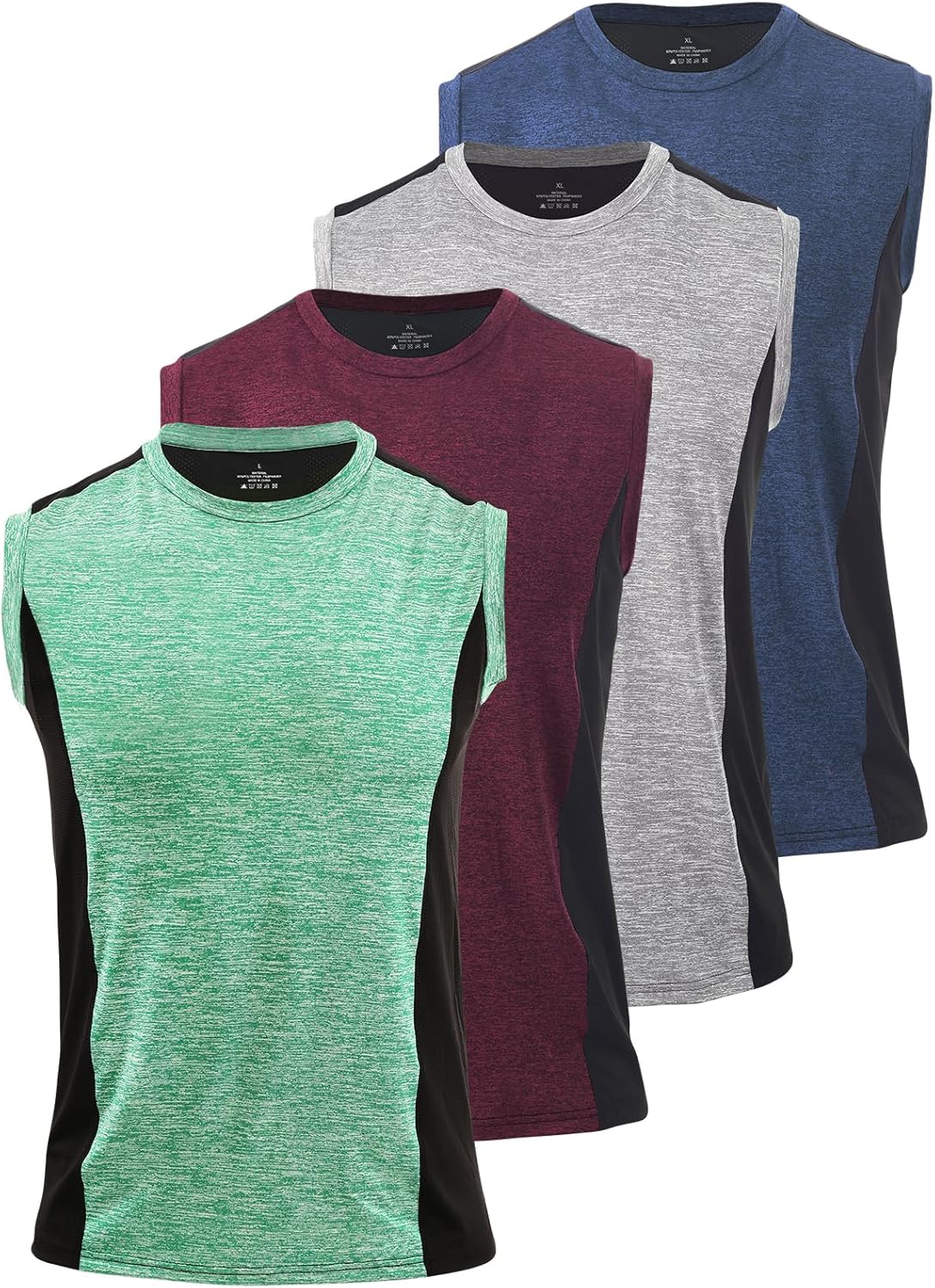 Vislivin Men's 4 Pack Tank Tops Sleeveless Workout Quick Dry Shirts Gym Muscle Shirts Athletic Bodybuilding Tee